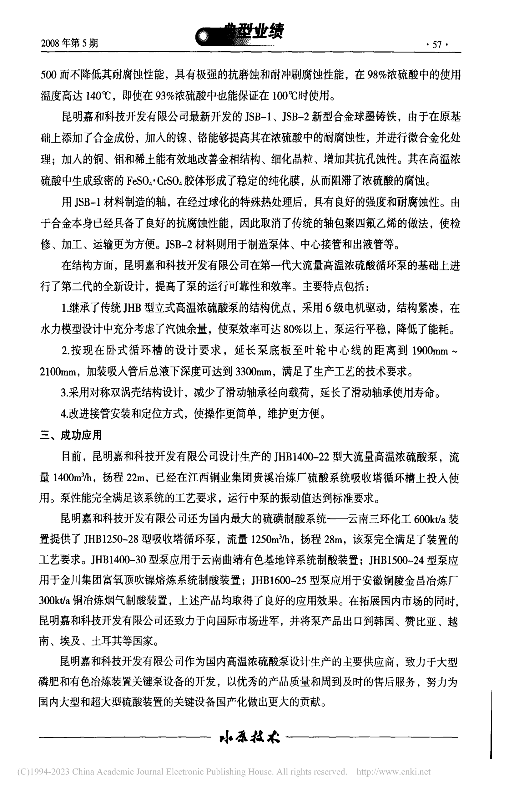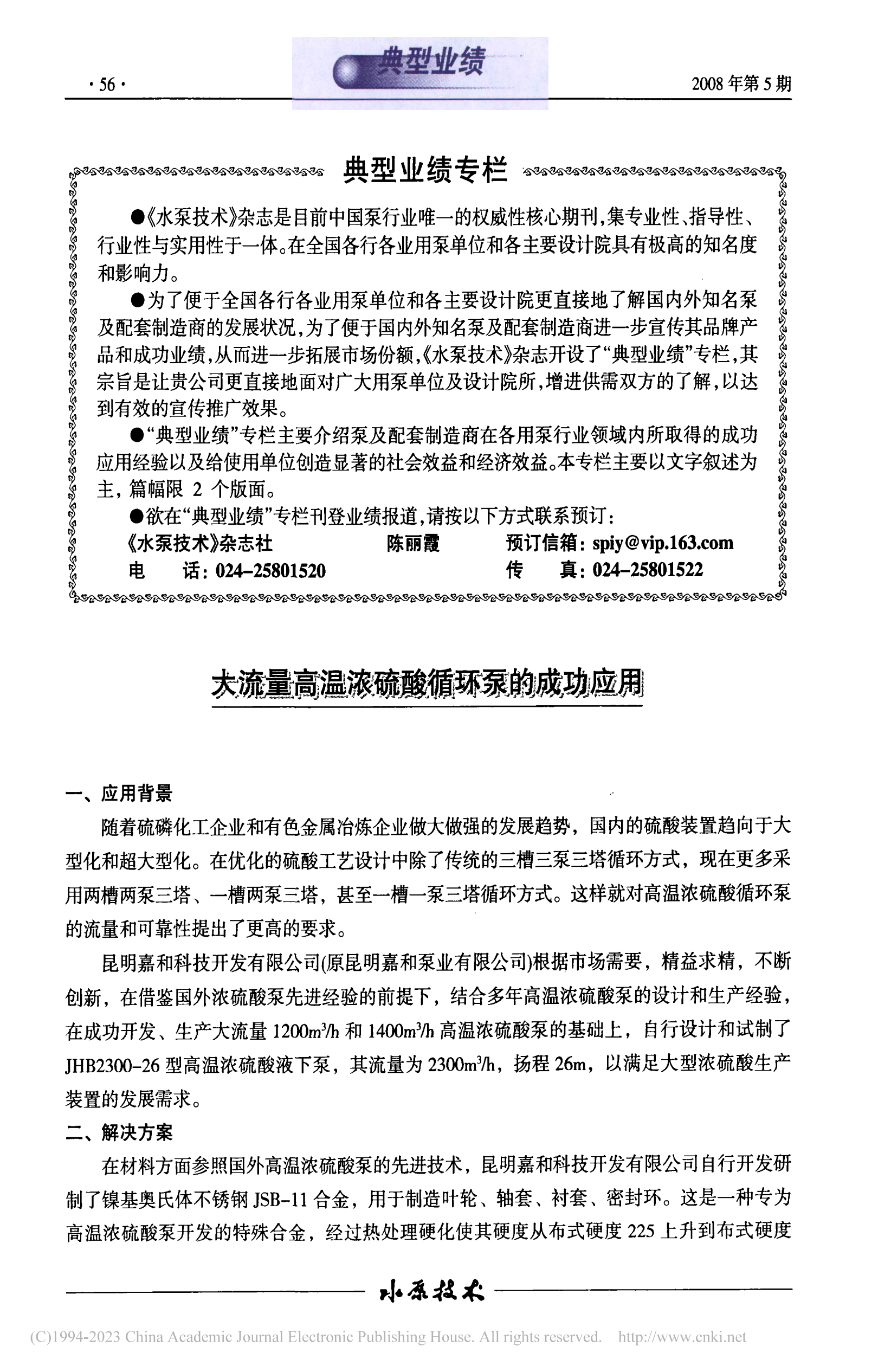 大流量高溫濃硫酸循環泵的成功應用