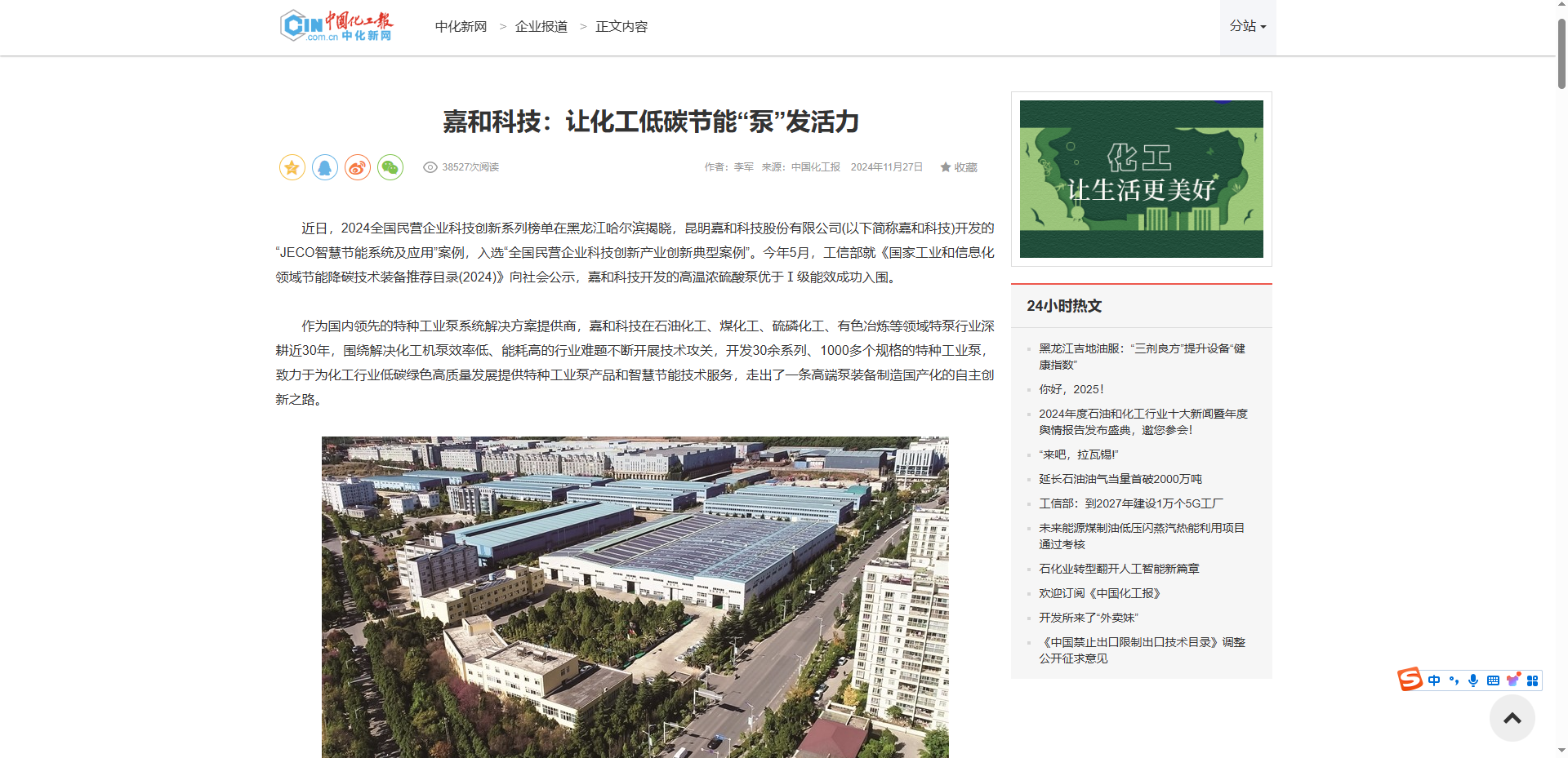 嘉和科技:讓化工低碳節(jié)能“泵”發(fā)活力